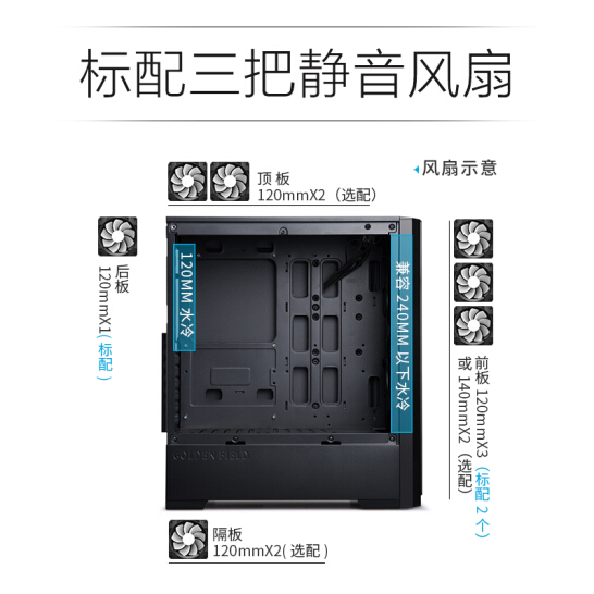 金河田(Golden field)P1靜音坊電腦機箱 水冷游戲臺式靜音主機箱(ATX/M-ATX/防塵降噪隔音棉/三靜音風扇)